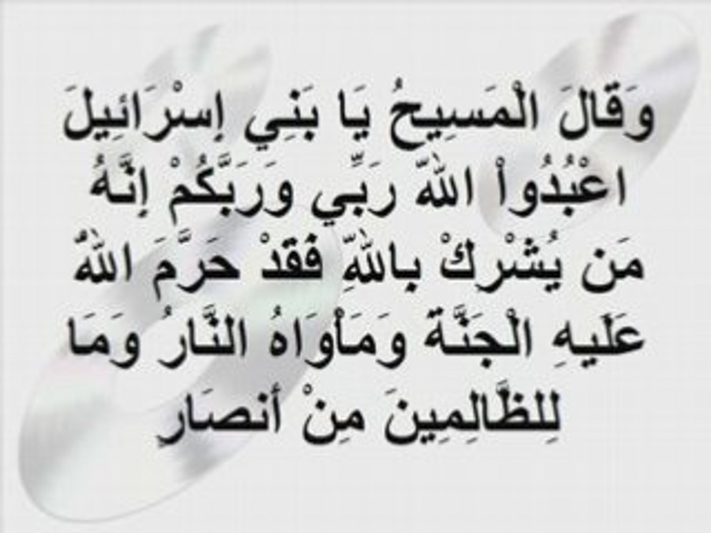 ل ق د ك ف ر ال ذ ين ق ال وا إ ن الل ه ه و ال م س يح اب ن م ر ي م و ق ال ال م س يح ي ا ب ن ي إ س ر ائ يل اع ب د وا الل ه ر ب ي و ر ب ك م إ ن ه م ن ي ش ر ك ب الل ه ف ق د ح ر م الل ه اجمل واروع الصور الاسلامية والدينية