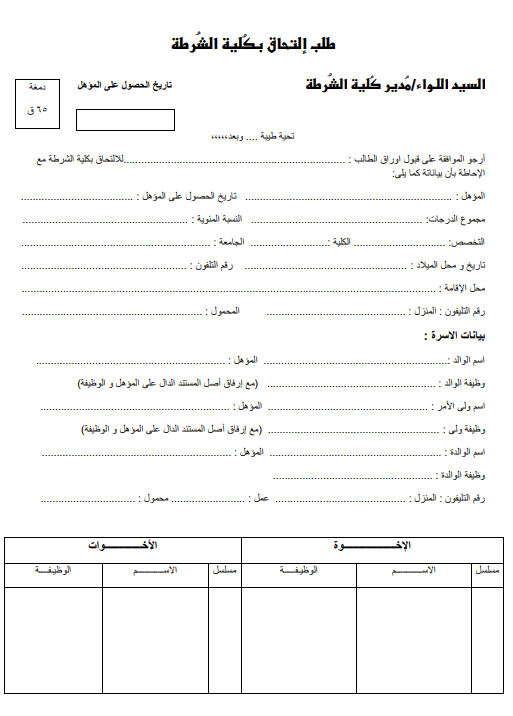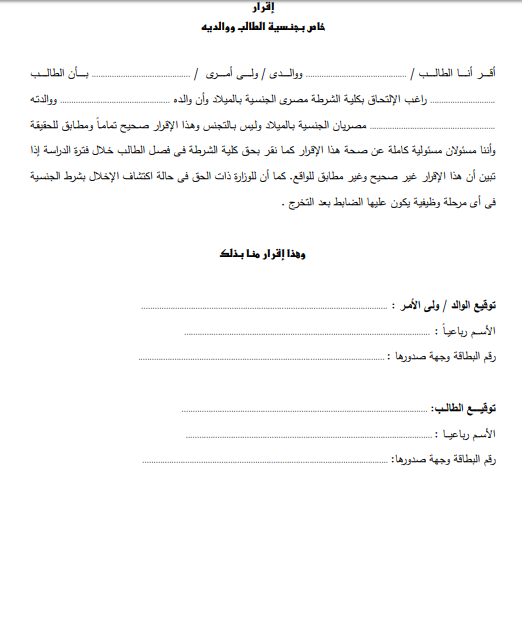 طباعة نموذج طلب الإلتحاق الورقى ونموذج الإقرارات كلية الشرطة