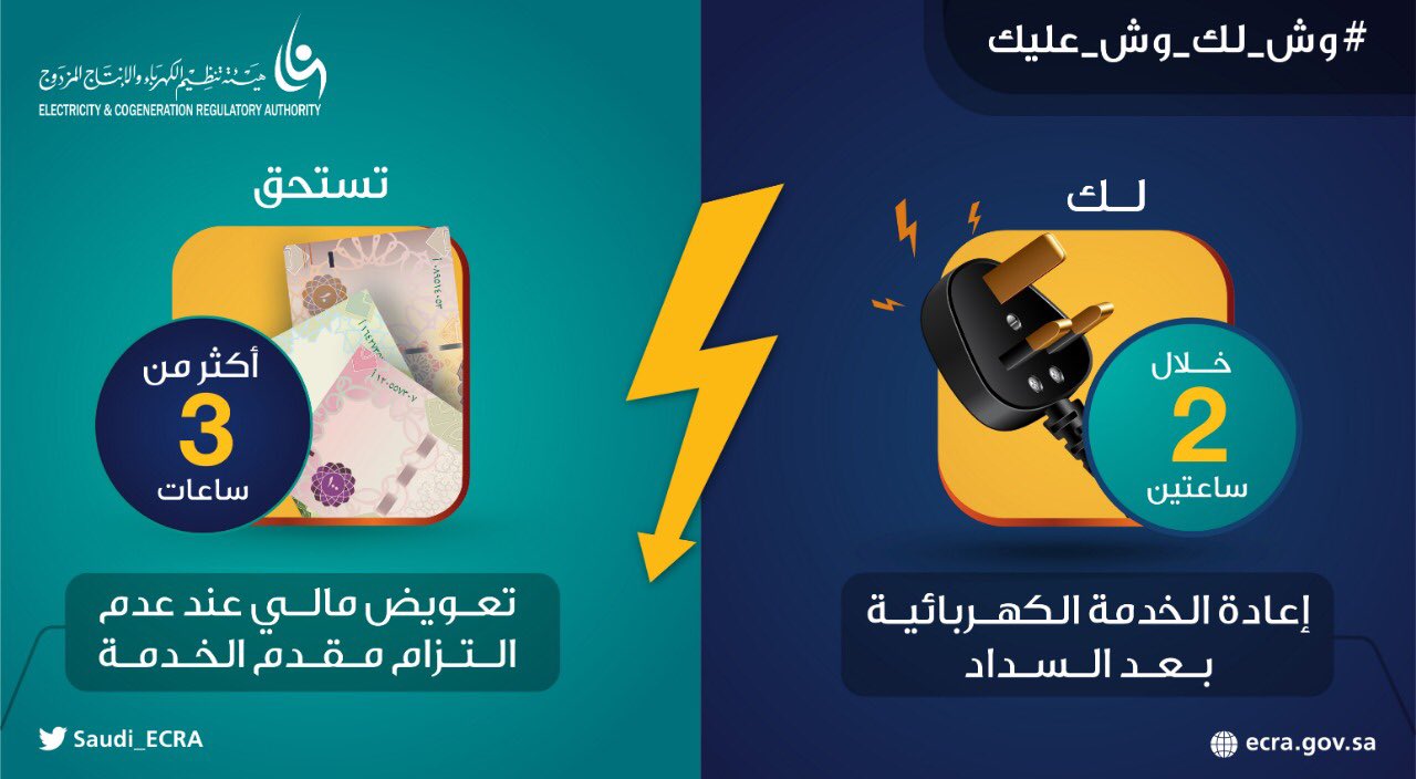 أوضحت هيئة تنظيم الكهرباء المدة الزمنية لوصول التيار الكهربائي من تاريخ يوم السداد وذلك بعد استفسار أحد. تكرار الانقطاع الكهربائي. وقت إعادة الكهرباء بعد السداد.