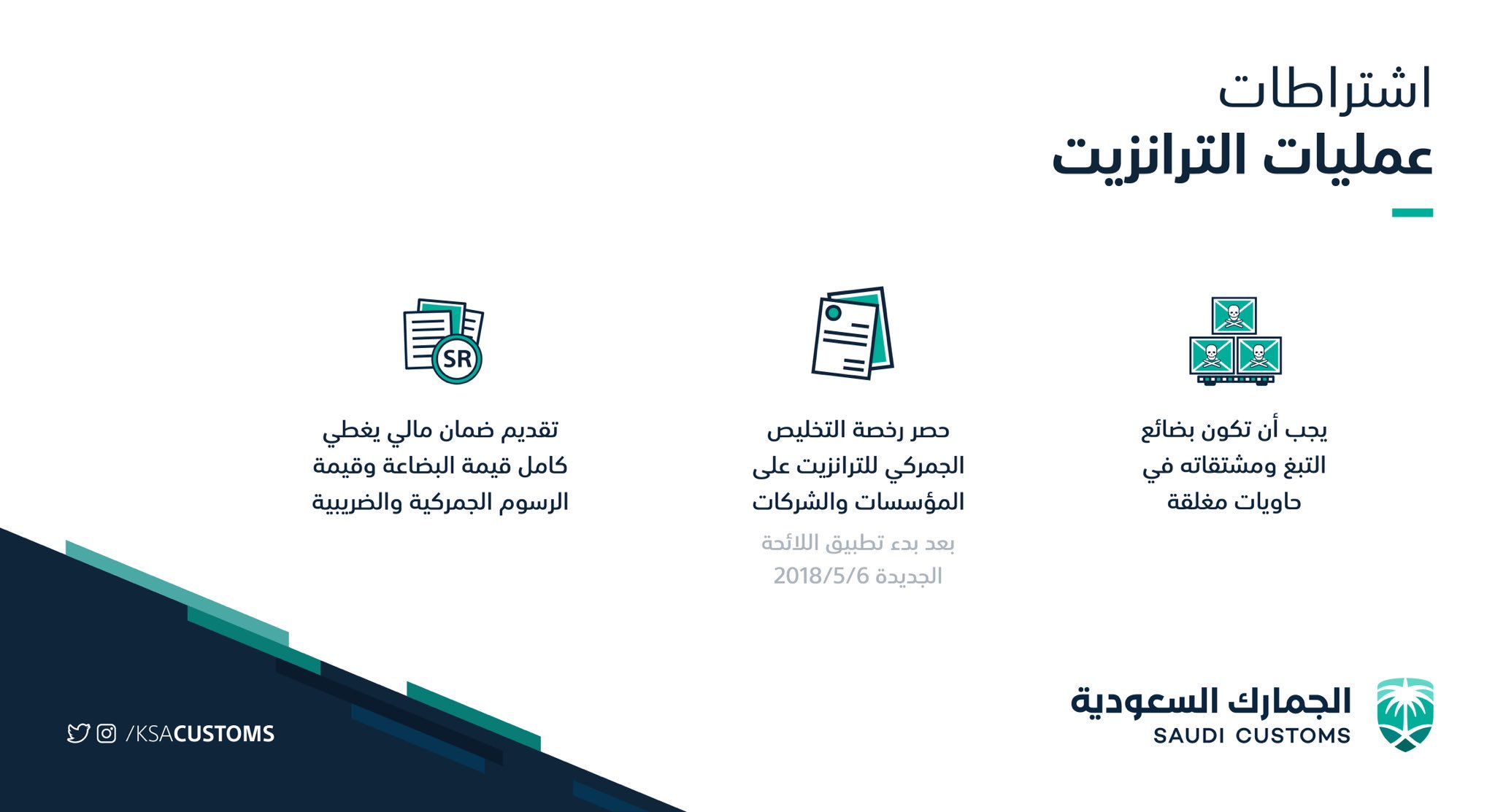 الجمارك السعودية On Twitter عزيزي المستورد إذا كانت بضائعك من ضمن البضائع العابرة فينبغي عليك التقي د بالاشتراطات اللازمة لعمليات الترانزيت وذلك لتفادي عقوبة التهرب والتلاعب الجمارك السعودية Https T Co Paxaulefwf