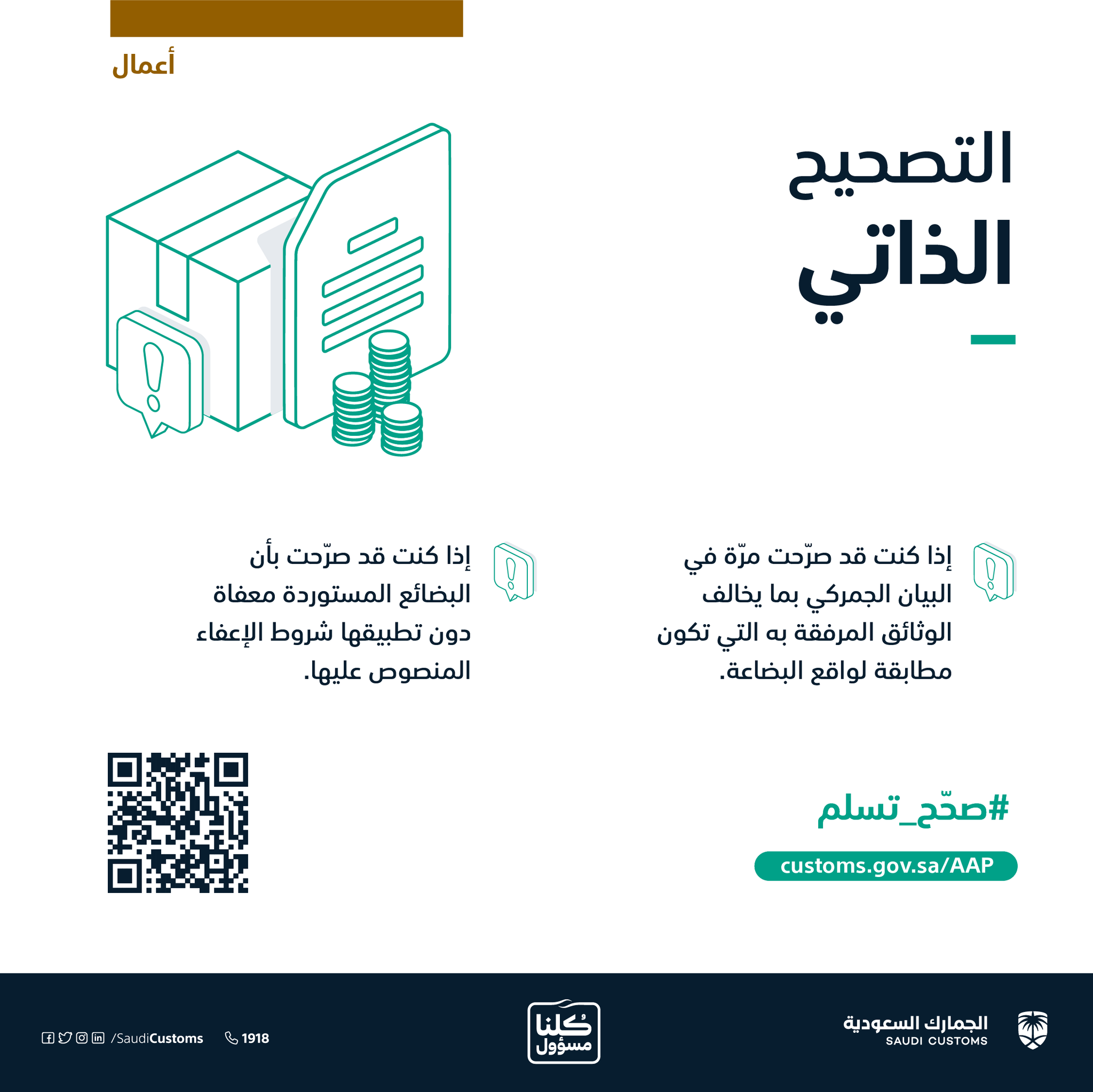 الجمارك السعودية On Twitter تصريحك بأن البضائع المستوردة معفاة دون تطبيقها شروط الإعفاء المنصوص عليها يعر ضك للغرامة بادر بتصحيح بياناتك قبل انقضاء المدة المحددة للمبادرة صح ح تسلم بادر الآن Https T Co Tyaqt93mew Https T Co Ynxghwdns7