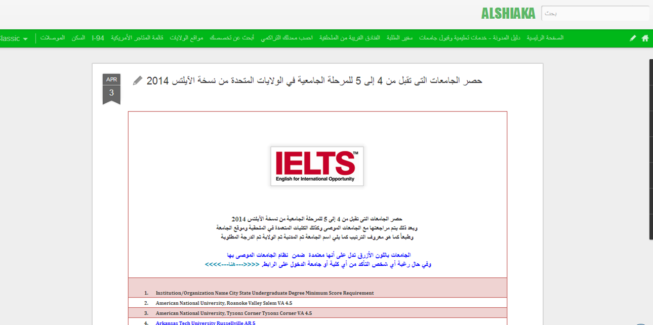 Flex حصر الجامعات التى تقبل من 4 إلى 5 للمرحلة الجامعية في الولايات المتحدة من نسخة الآيلتس 2014