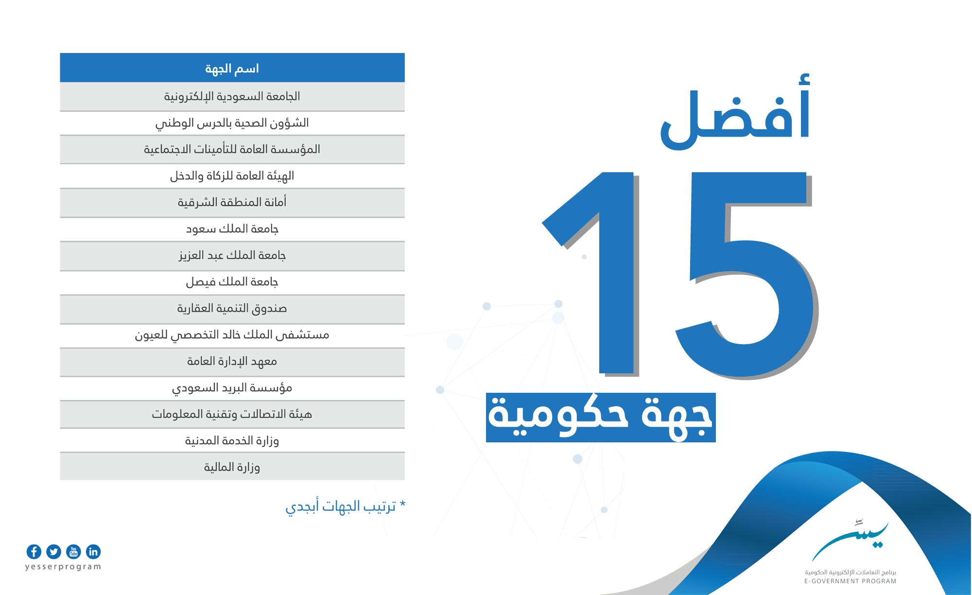 بـ رنـ امـ ج يـ س ـ ر No Twitter تعر ف على قائمة أفضل 15 جهة في مؤشر نضج الخدمات الرقمية الحكومية