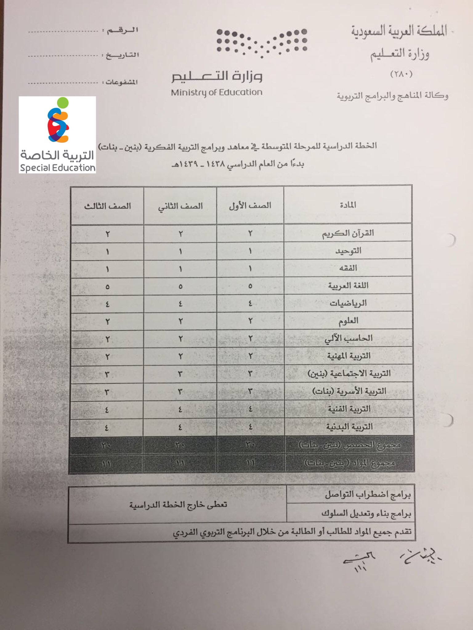 الـ ـتـ ـربـ ـيـ ـة الـ ـخـ ـاصـ ـة Auf Twitter الخطة الدراسية للمرحلة المتوسطة في معاهد وبرامج التربية الفكرية بنين بنات للعام الدراسي 1439 1440هـ