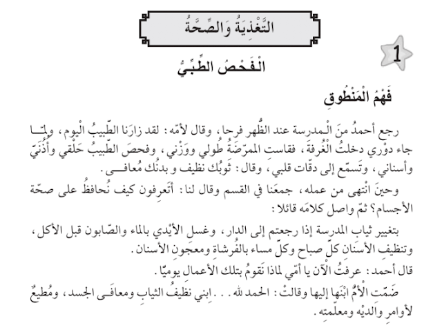 نص فهم المنطوق الفحص الطبي السنة الأولى ابتدائي الجيل الثاني
