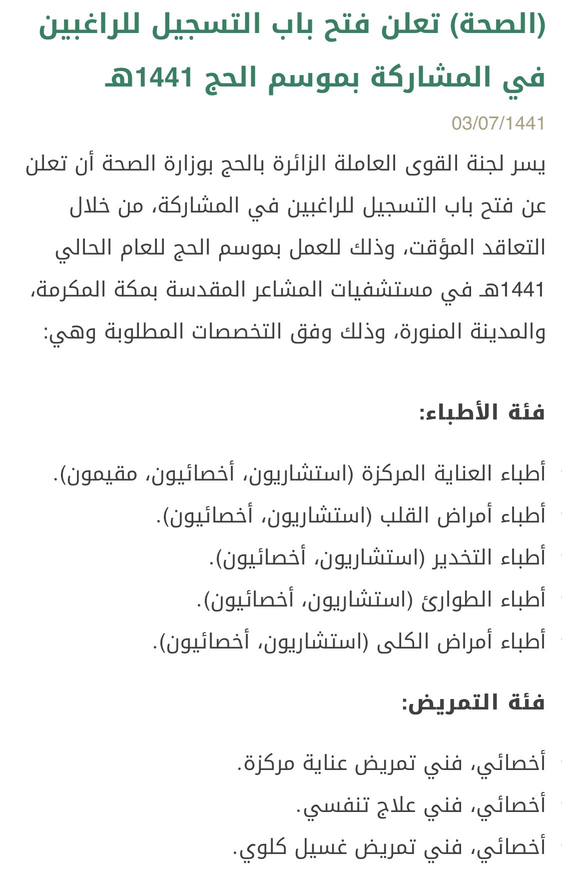 سعد آل جدران On Twitter عاجل لجميع منسوبي وزارة الصحة تم فتح باب التقديم للمشاركة في موسم الحج لعام 1440هـ إعتبارا من اليوم الثلاثاء 9 5 1440هـ وبالتوفيق