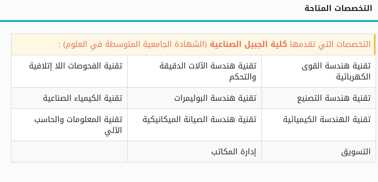 كلية الجبيل الصناعية Twitterissa تقدم كلية الجبيل الصناعية الشهادة الجامعية المتوسطة للتخصصات التالية