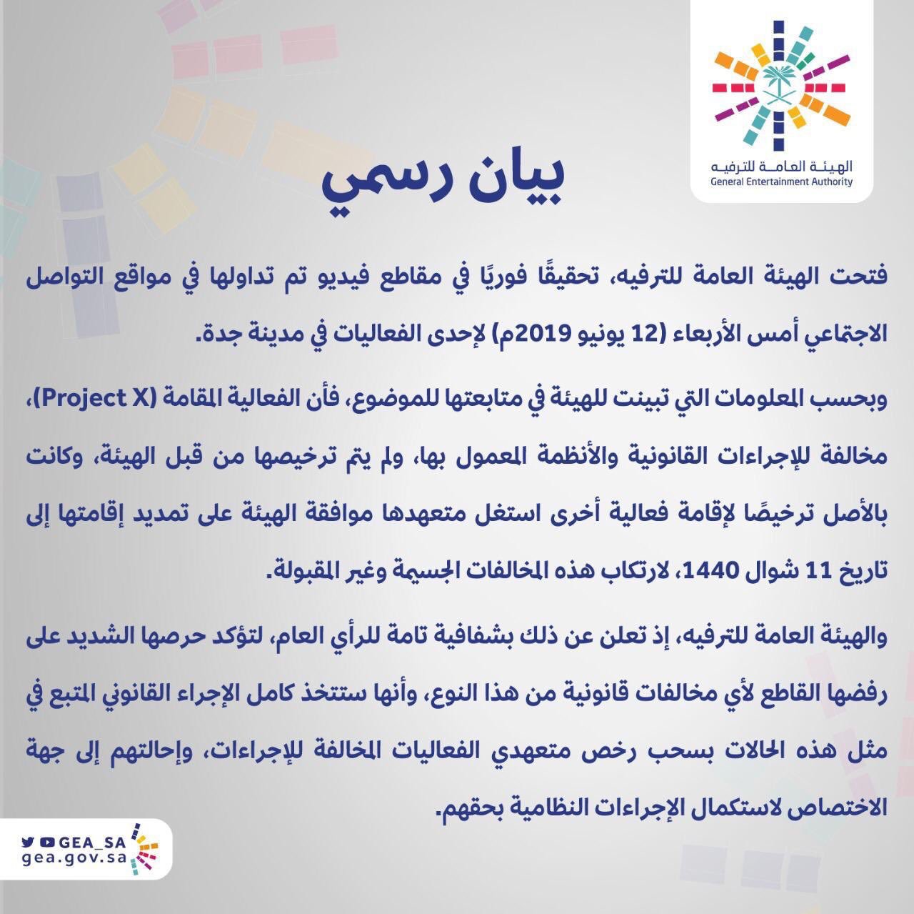 الهيئة العامة للترفيه On Twitter الهيئة العامة للترفيه تفتح تحقيقا فوريا في مقاطع فيديو تم تداولها لإحدى الفعاليات في مدينة جدة لم يتم ترخيصها من قبل الهيئة Https T Co Tsmtgjaxa2