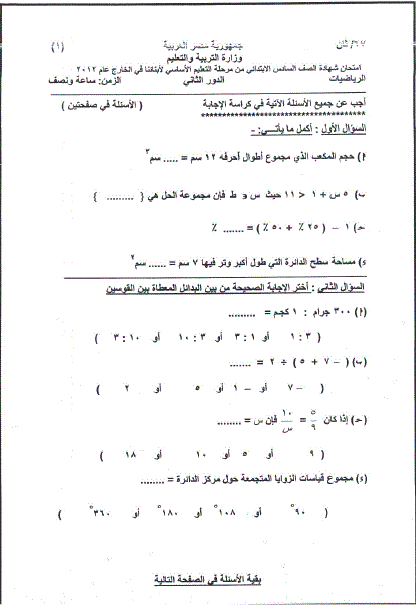 Adz4u Omniawagdy نشر اختبارات الرياضيات للصف السادس الابتدائى أبناؤنا فى الخارج الدور الأول والثانى للأعوام السابقة