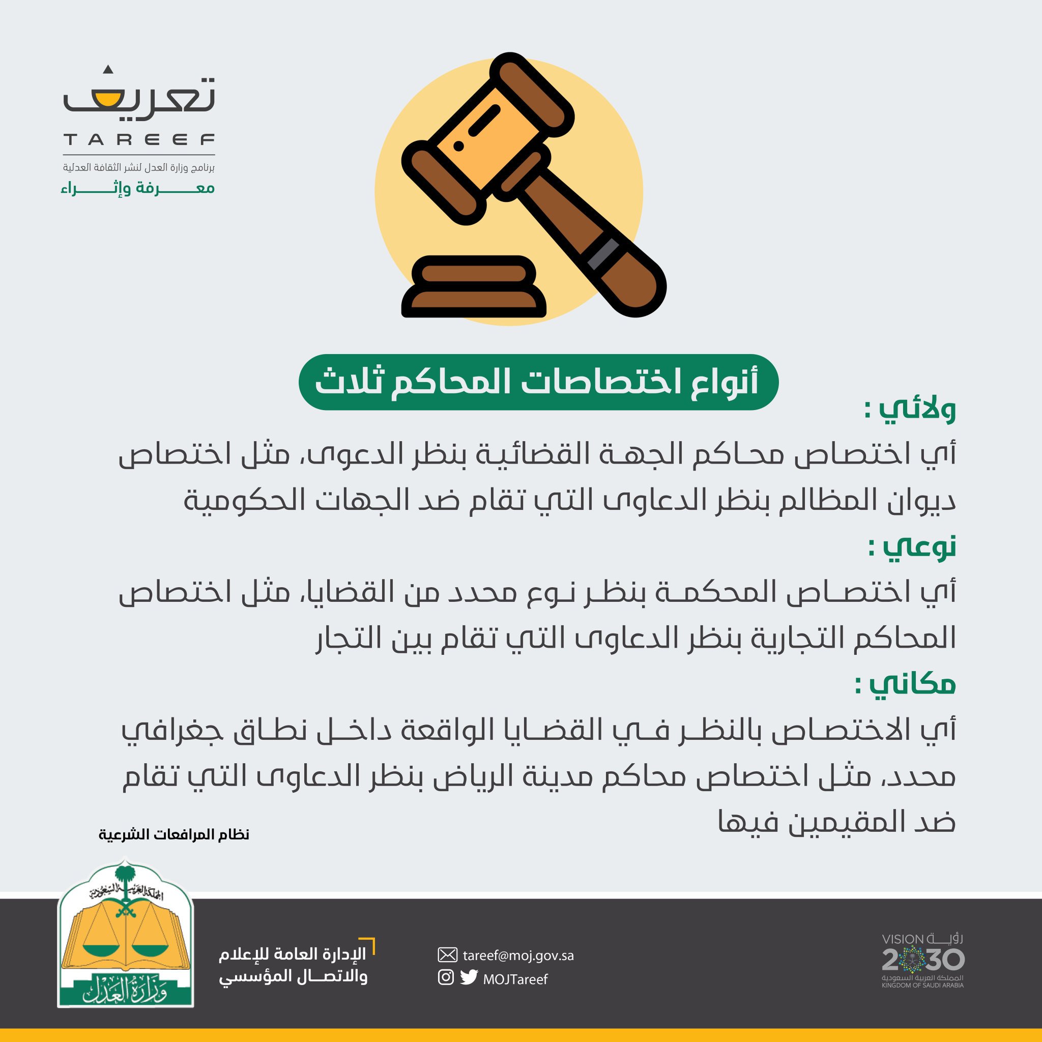 عدالة السعودية A Twitteren أنواع اختصاصات المحاكم ثلاث ولائي نوعي مكاني