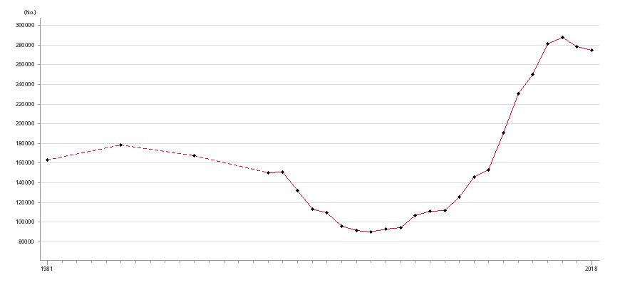 Number Of Waiting List Applicants For Housing Authority Rental Flats Social Indicators Of Hong Kong